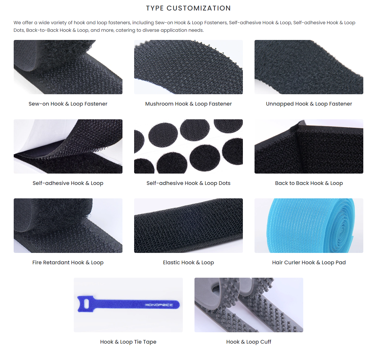 Our Hook and Loop color card offers a wide selection of 210 standard colors, with the flexibility to accommodate custom buyer-specified colors.